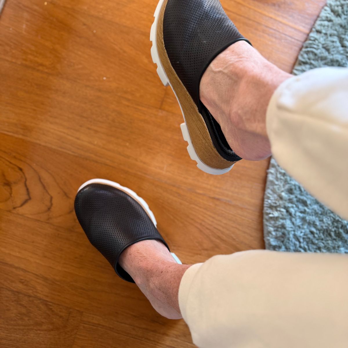 1 recensione per Ciabatte con plateau nere in vera pelle