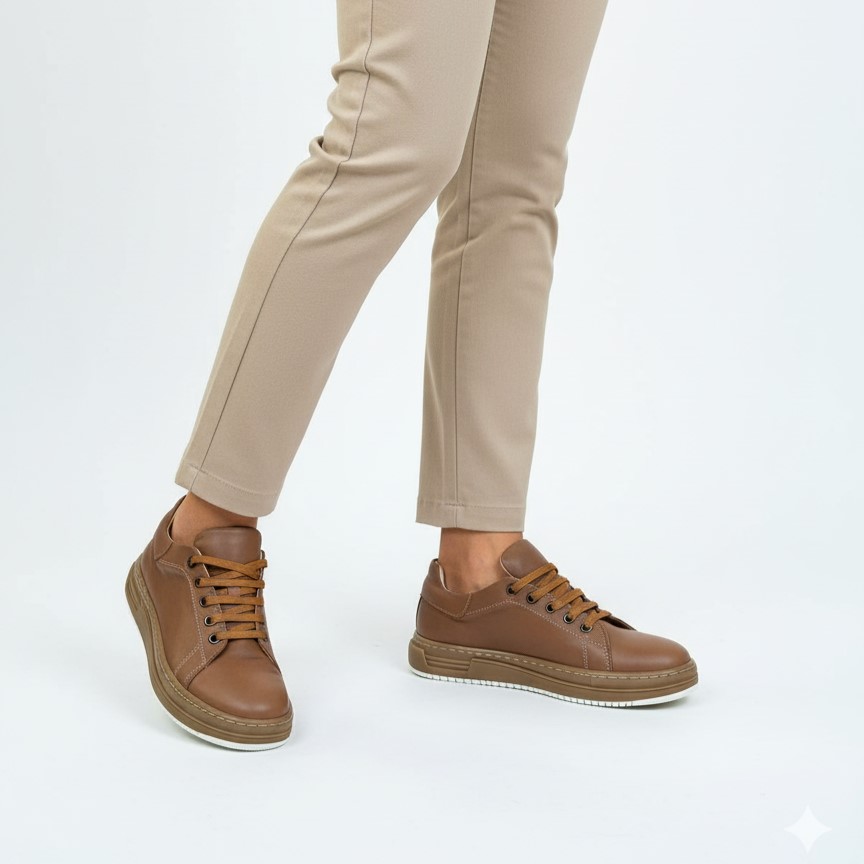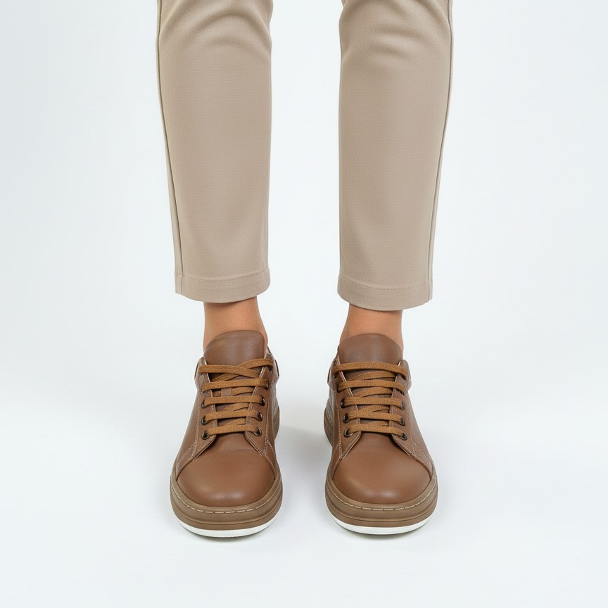 Realizzate in morbida pelle naturale in una calda tonalità caramello, queste sneakers da donna fondono eleganza casual e comfort quotidiano – perfette per la vita dinamica di tutti i giorni.