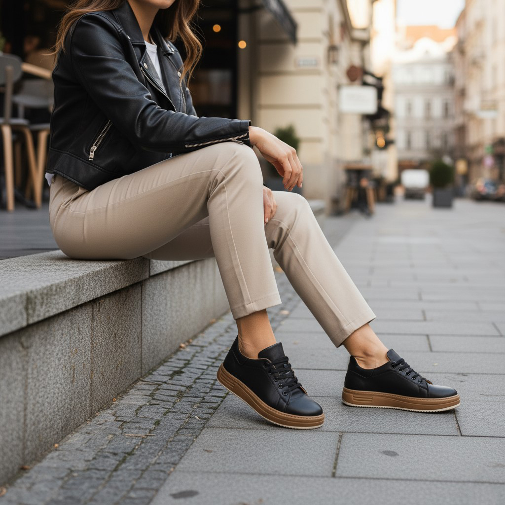 Realizzate in pelle naturale nella classica tonalità nera, queste sneakers da donna rappresentano il perfetto equilibrio tra minimalismo e comfort.